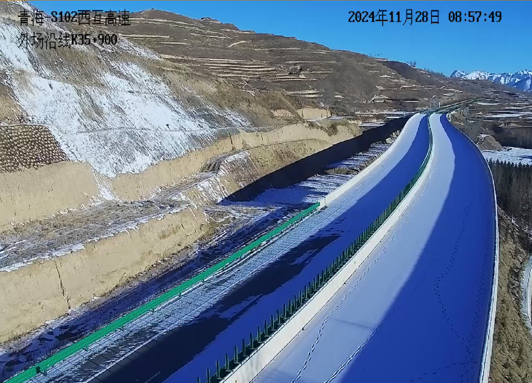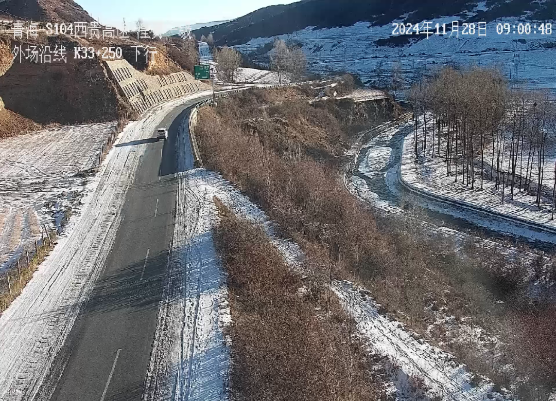 S104(西宁至贵德)线湟贵一级公路(湟中-贵德):部分路面有积雪。