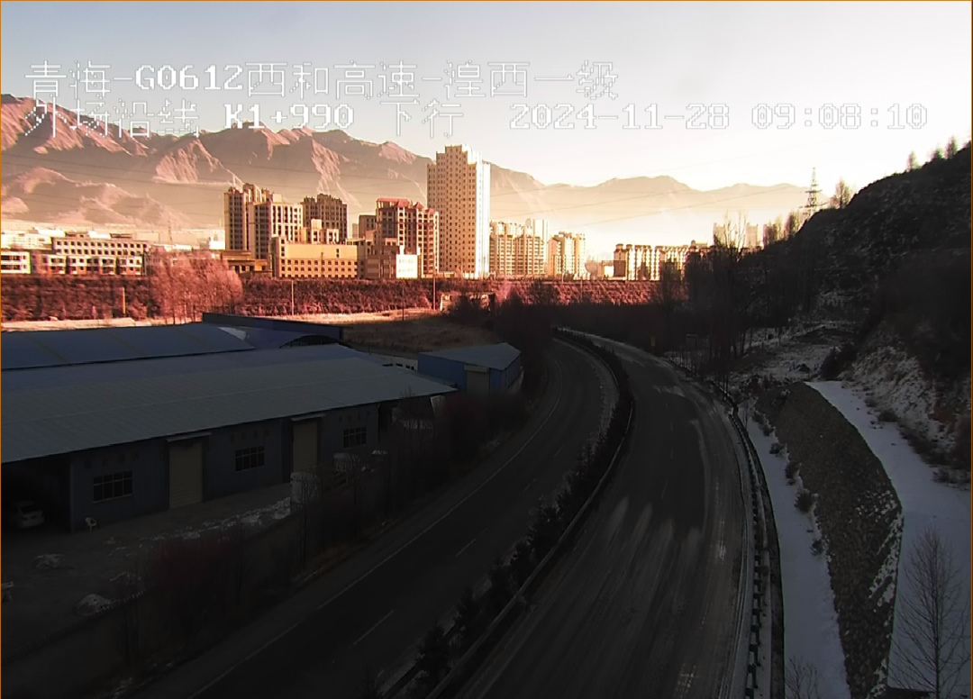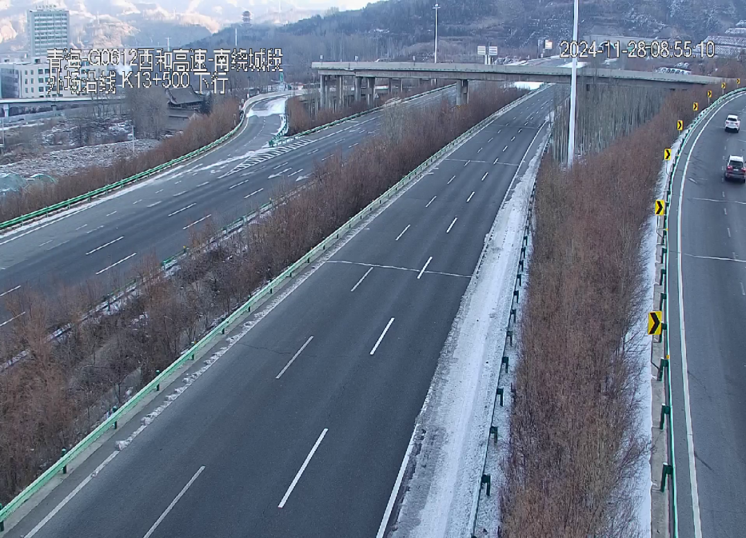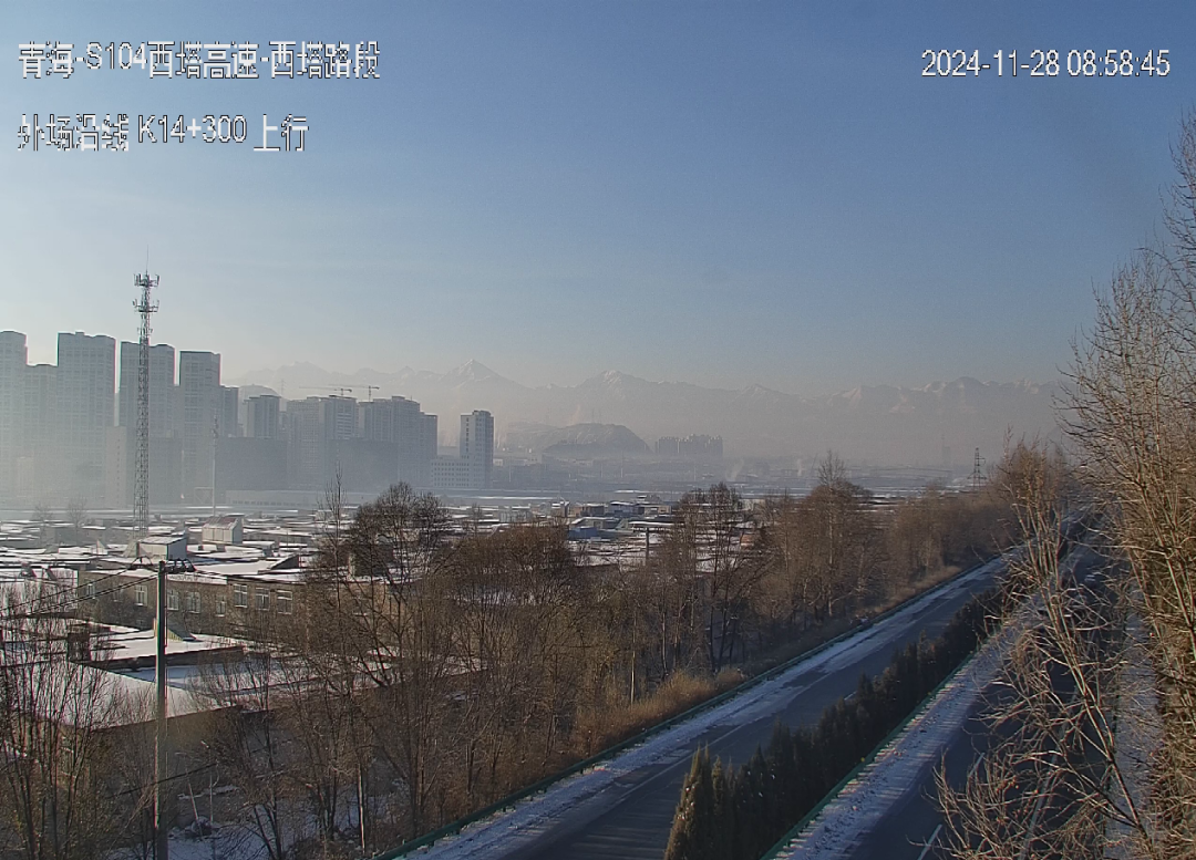 S104(西宁至贵德)线西塔高速(西宁-塔尔寺):路面有积雪。
